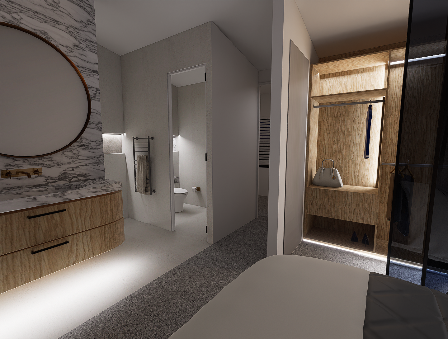 Set in rural Ohoka, this became a journey with my clients to create a soft oriental mood for their new home. Organic and tactile soft finishes were chosen for wallpapers and drapery which could be changed later easily, while the hard surfaces were to be kept neutral and modern.